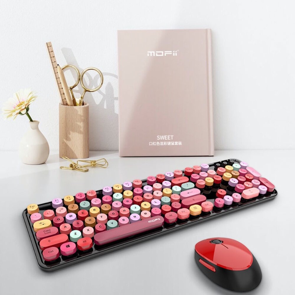 商品名稱:網紅口紅鍵盤滑鼠套裝 送禮 交換禮物 送透明注音鍵盤貼紙 MOFII 送禮