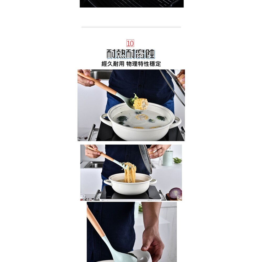 商品名稱:木柄耐熱矽膠廚具 11件組 不沾鍋專用 食品級矽膠廚具 含廚具桶 超耐熱230度 送禮