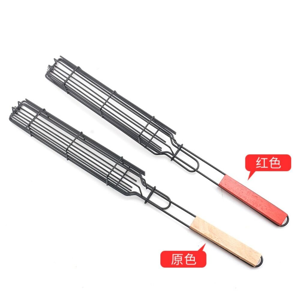 烤肉專用香腸籃 燒烤網 燒烤籠 烤肉夾網 木柄BBQ烤網燒烤架