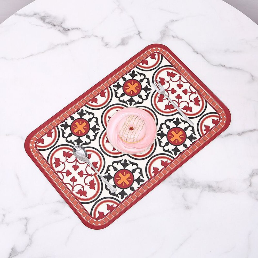 磚花系餐墊 皮革防水防油隔熱墊 居家拍照裝飾