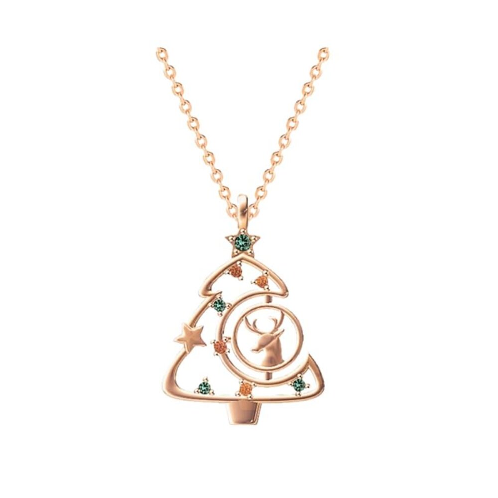 ⭐項鍊主體為925銀, 電鍍玫瑰金色, 點綴紅綠鋯石, 小鹿為立體鏡面工藝, 整體簡約大氣, 時尚且獨特