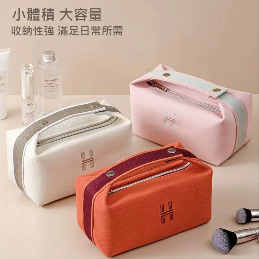 織帶手提帆布化妝包 便攜手提化妝包 字母簡約化妝包 大容量 收納包