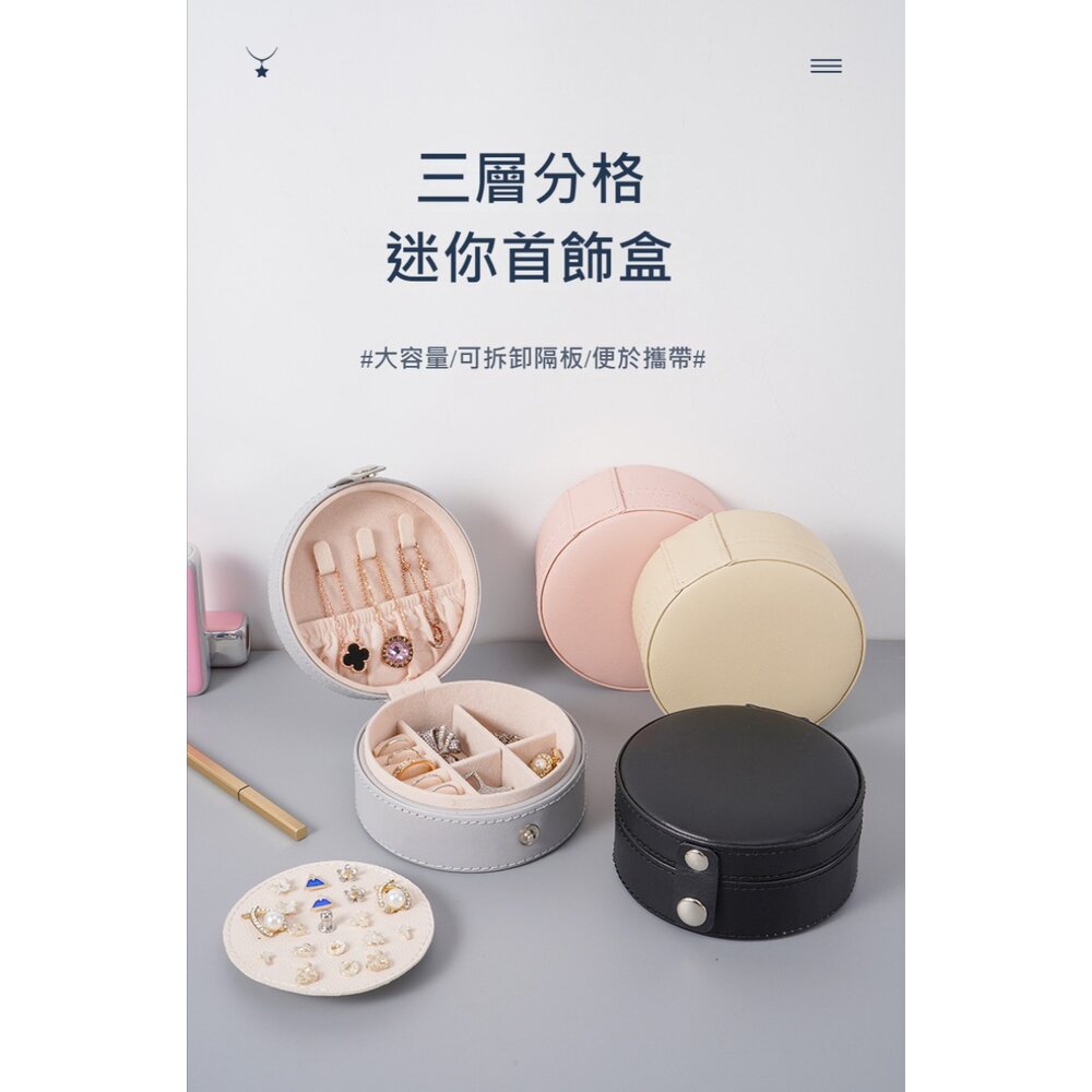 三層分隔迷你首飾盒 旅行便攜首飾收納盒 飾品收納盒 小首飾盒 珠寶盒 送禮