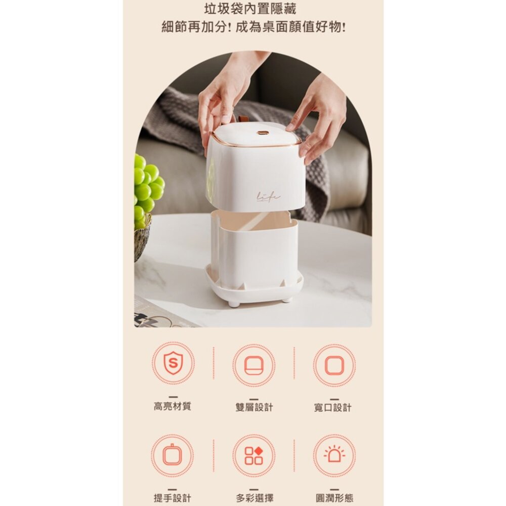 商品名稱:桌面按壓垃圾桶 垃圾袋不外露 桌上型小巧垃圾桶 家用帶蓋收納桶 方形整理收納盒 送禮