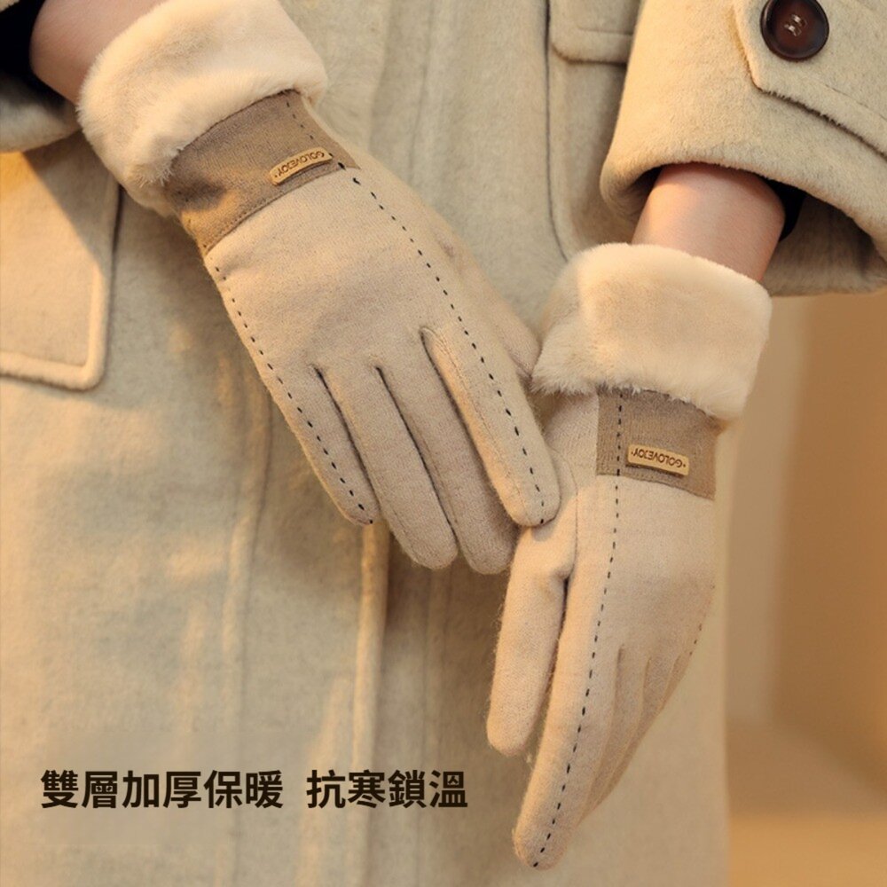 法式香風羊絨保暖手套 加絨加厚防風觸控 防寒手套 機車手套 戶外騎車保暖