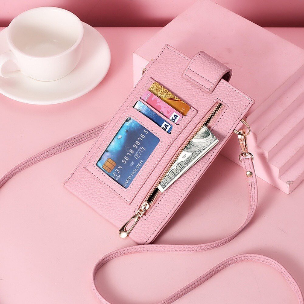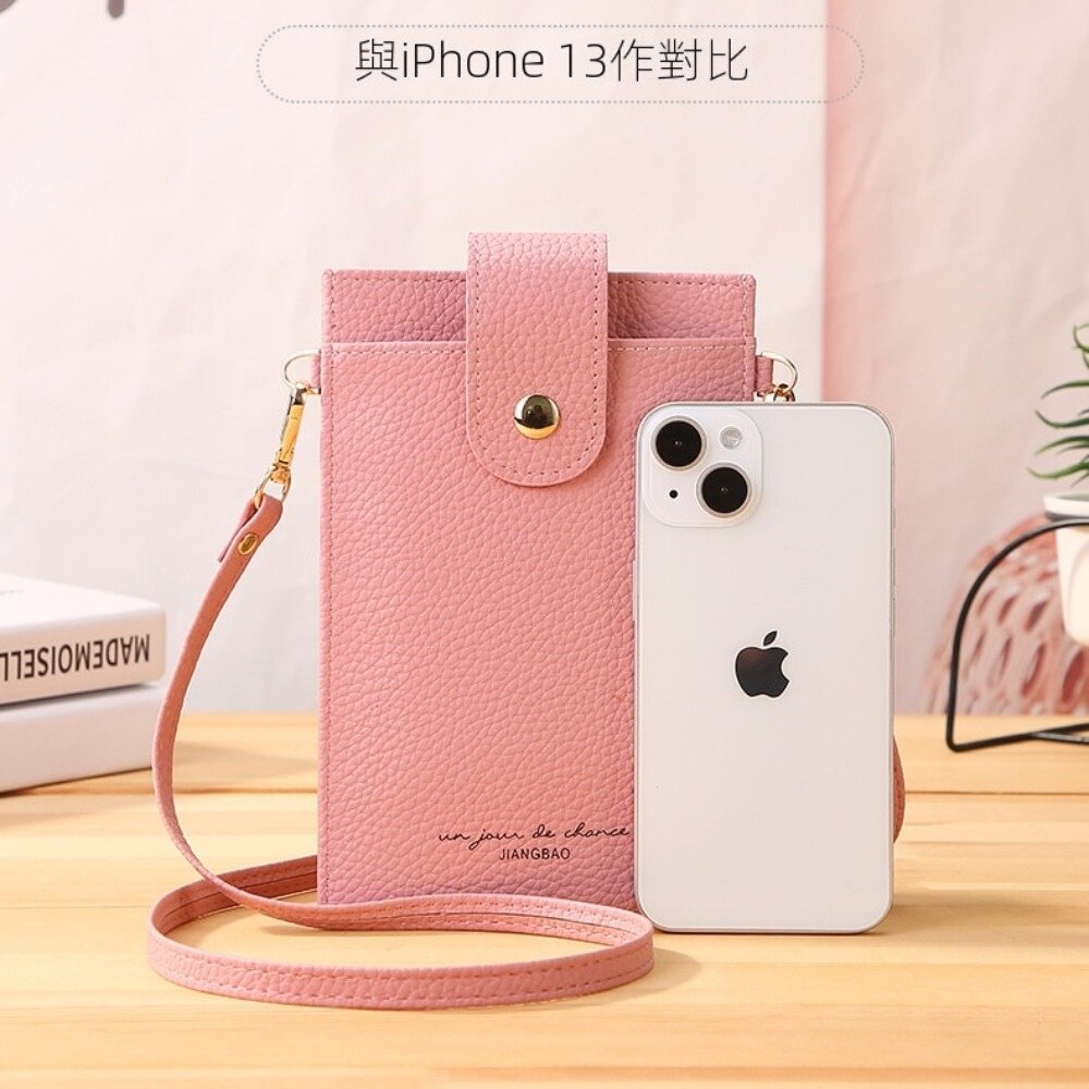 商品名稱:荔枝紋輕薄手機包 韓版迷你手機錢包 掛袋背帶 頸掛斜跨包 側背包 單肩女包 旅行錢包 送禮
