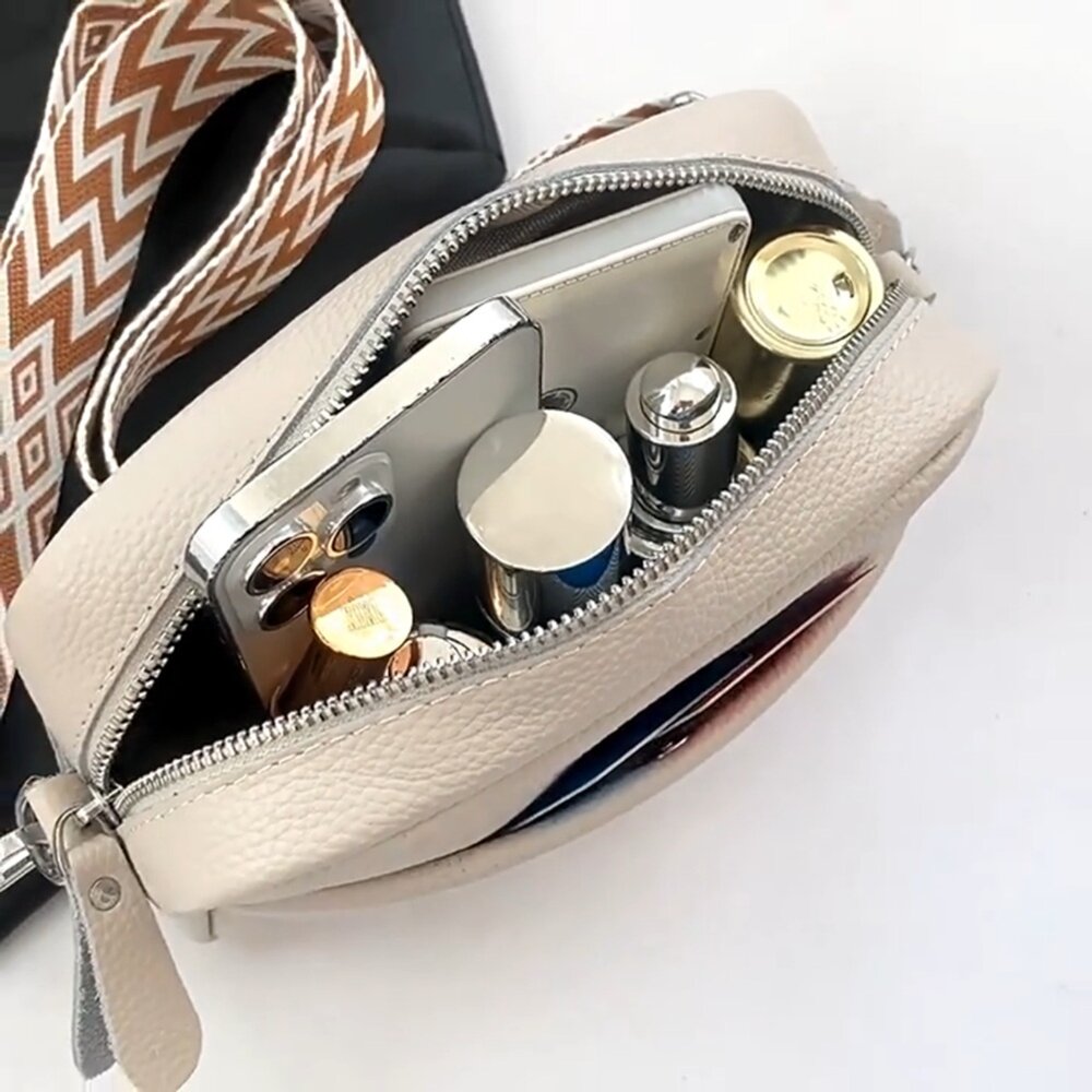 標籤:#側背包, #單肩包, #軟皮休閒包, #頭層牛皮, #寬版撞色肩帶