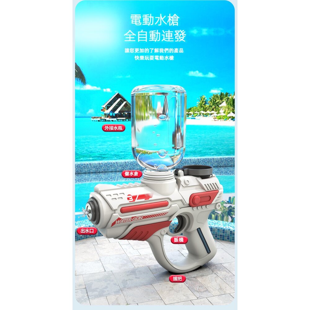 商品名稱:大容量電動連發水槍 全自動連發 外接擴充水瓶 兒童沙灘戲水玩具 送禮 童玩節2023 送禮