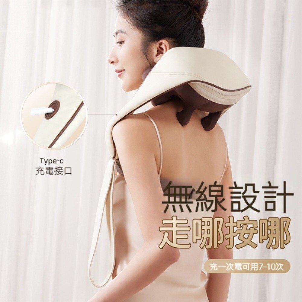 商品名稱:真人手感肩頸按摩器 斜方肌按摩 充電熱敷頸椎 仿生揉捏按摩披肩 6D3檔 送禮