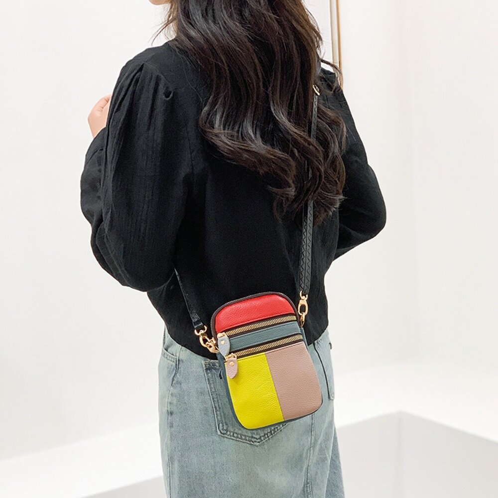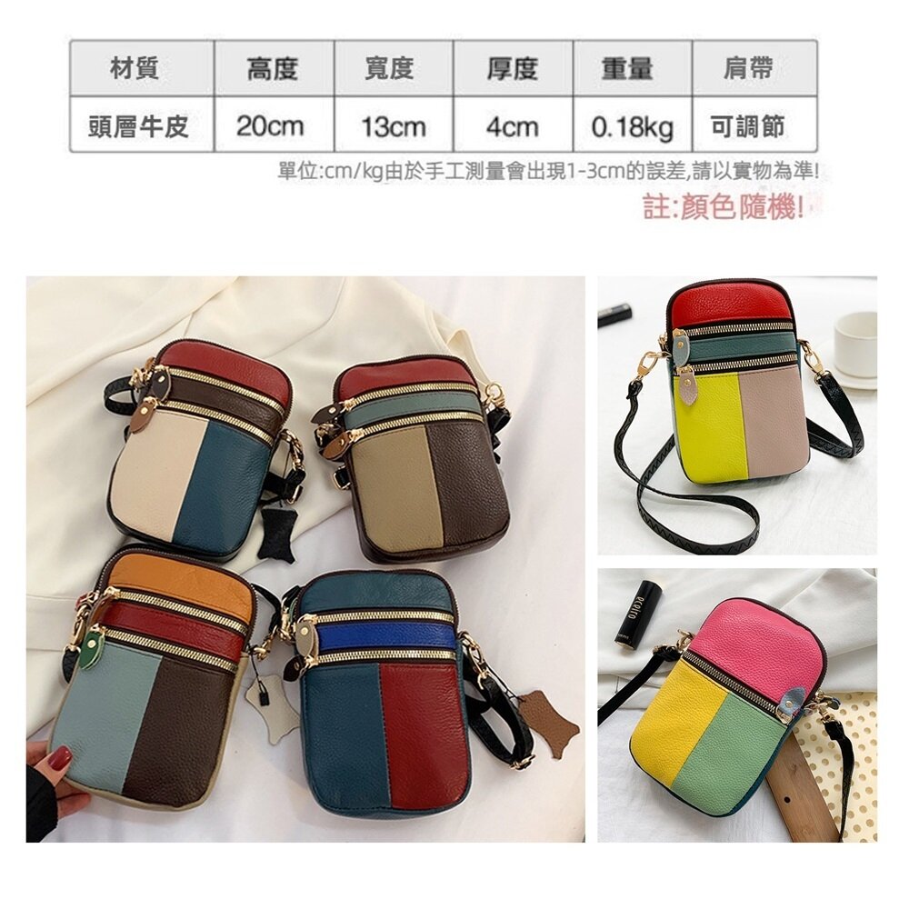 商品名稱:個性拚色真皮斜跨包 頭層牛皮 百搭小挎包 手機包 氣質女孩單肩小包 送禮