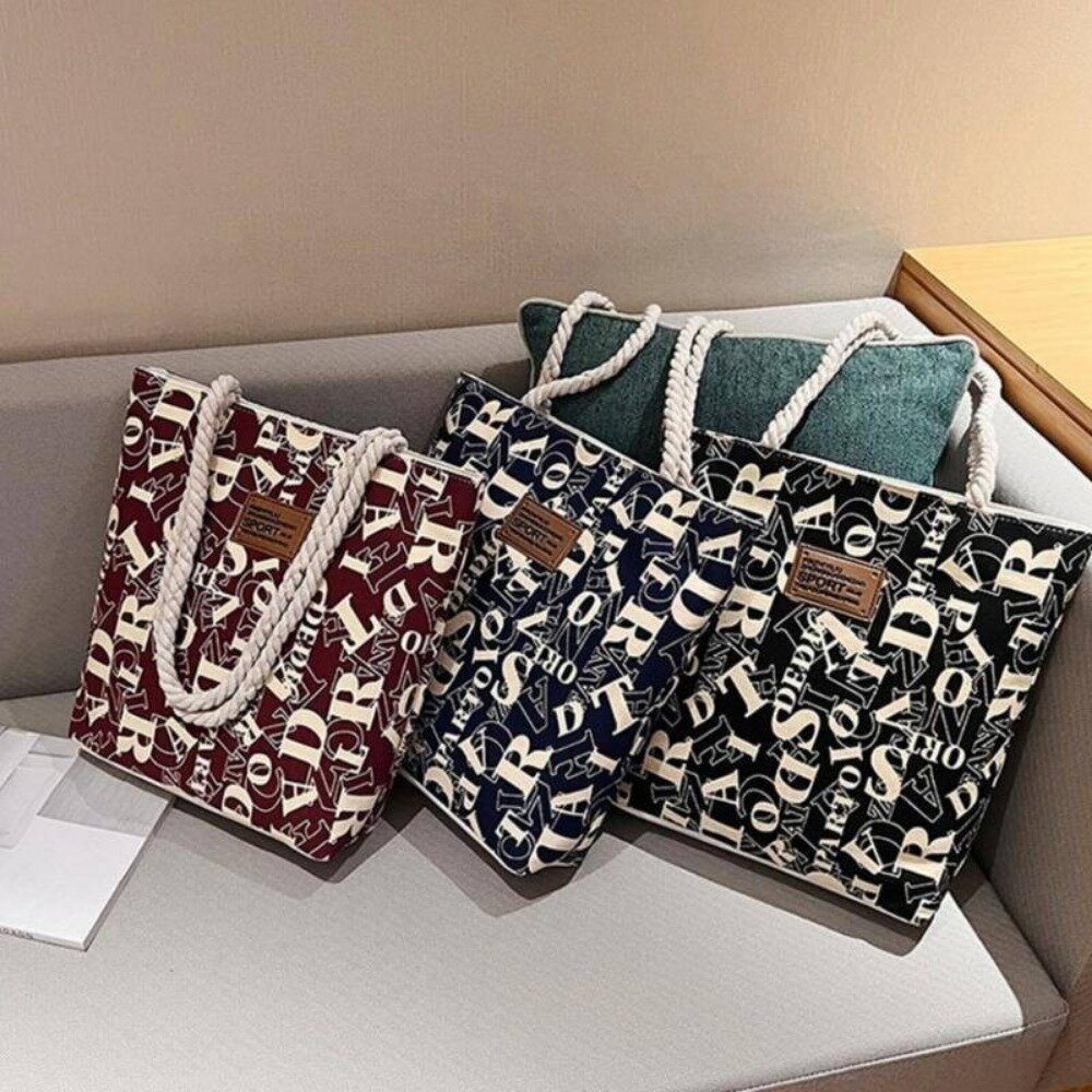 大容量個性字母帆布袋 帆布包手提袋 百搭時尚通勤托特包 購物袋