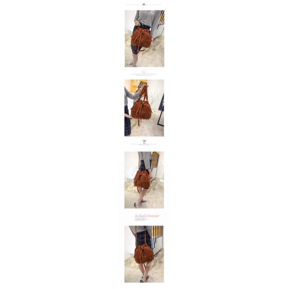 商品名稱:簡約復古流蘇包 流蘇抽繩水桶包 斜背包 斜跨包 單肩包 女包 包包 新款 送禮