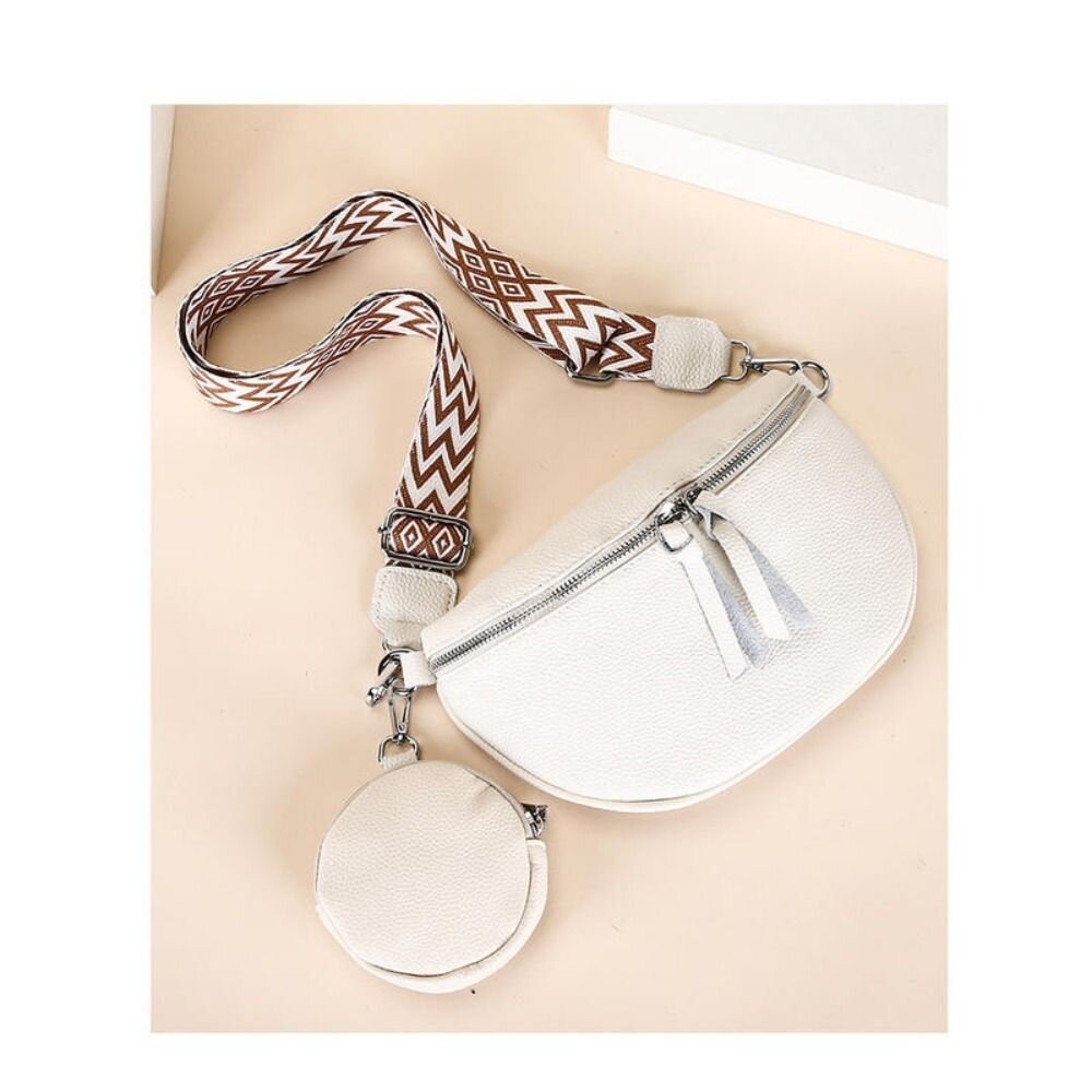1加1真皮時尚半月包 斜背包 胸包 腋下包 單肩包 時尚潮流 寬肩帶 零錢包