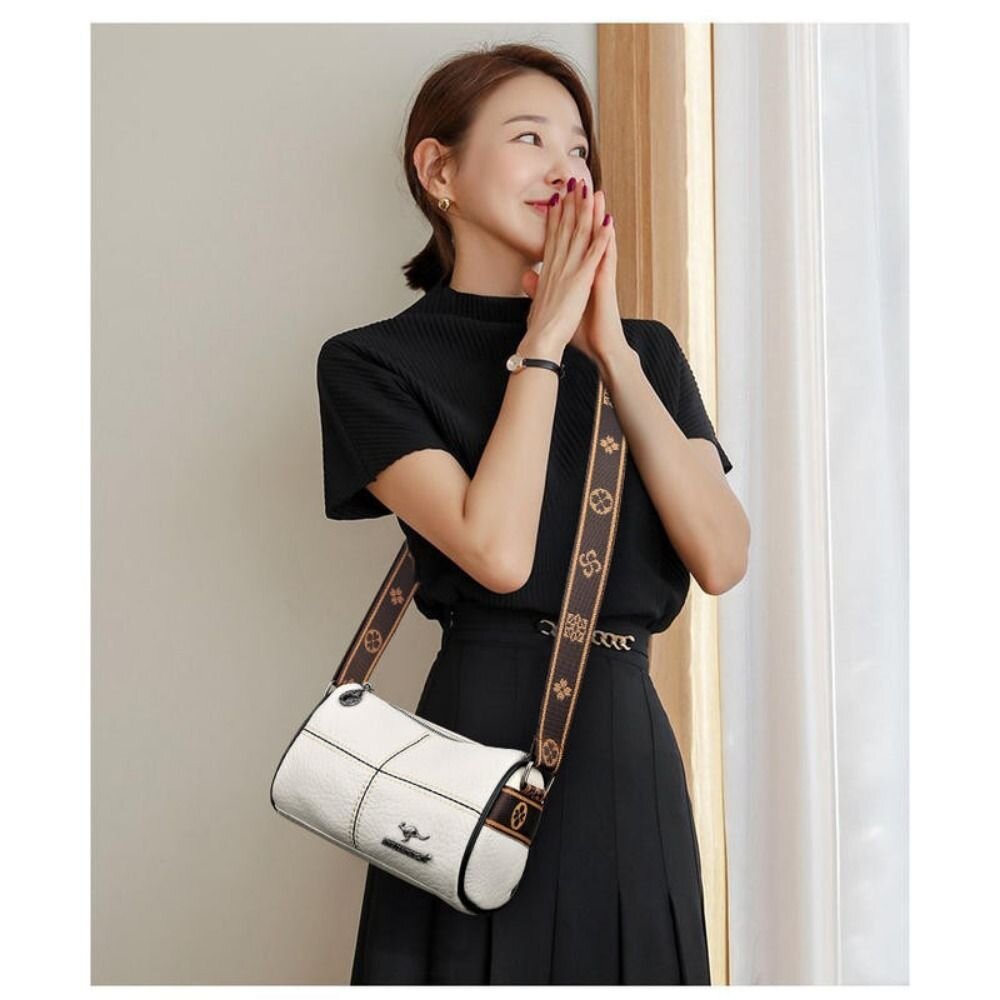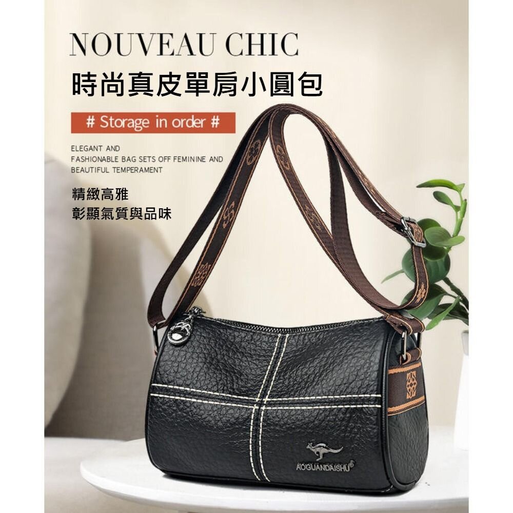 商品名稱:時尚真皮單肩圓筒包 斜背包 斜跨包 包包 簡約百搭 禮物 送禮