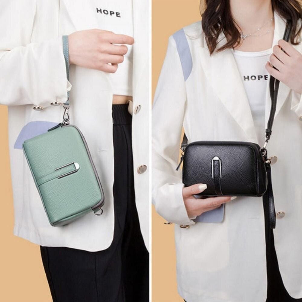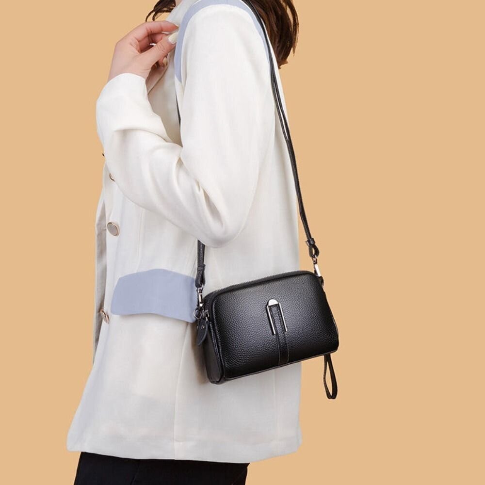 標籤:#時尚百搭, #休閒手拿包, #頭層牛皮, #斜挎包女