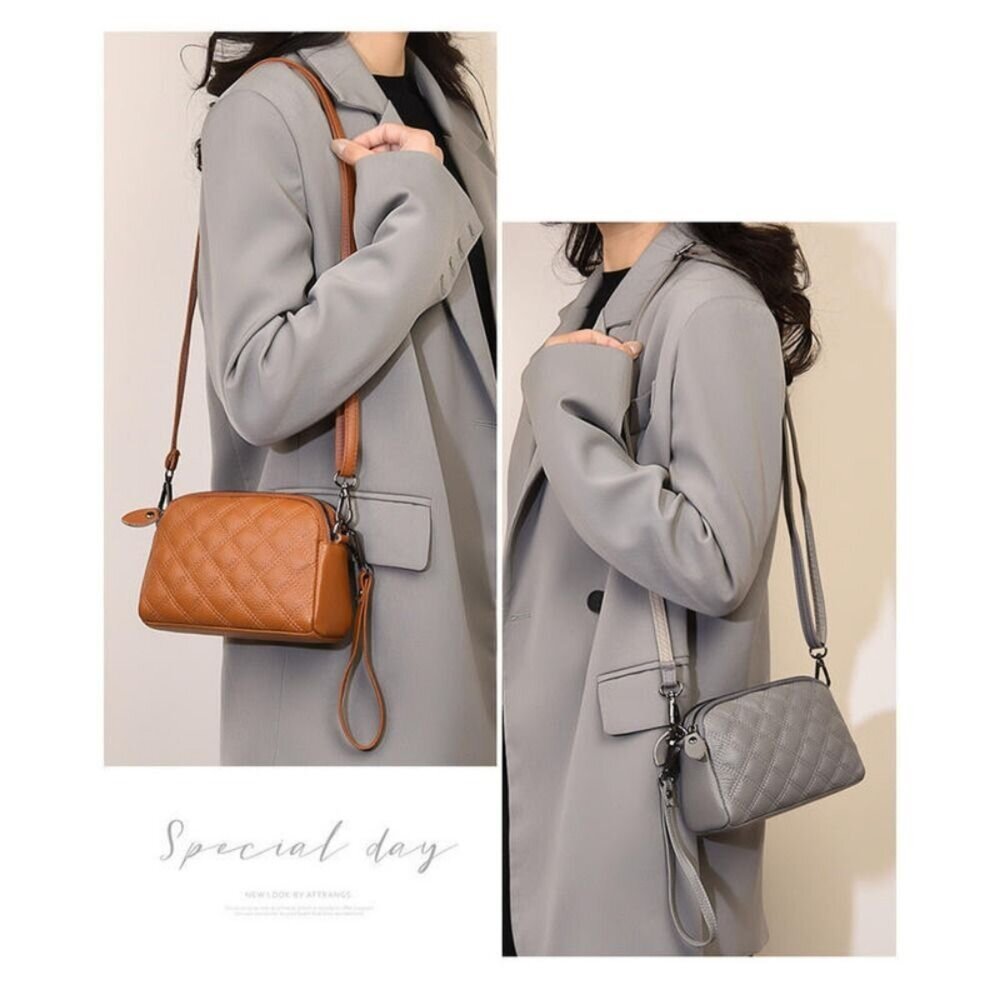 時尚真皮多層小方包 時尚百搭 休閒手拿包 頭層牛皮 斜挎包女