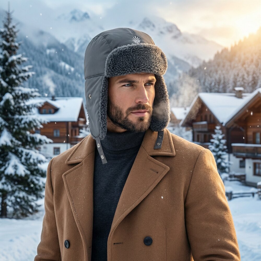 標籤:#休閒時尚個性, #羽絨雷鋒帽, #女保暖, #羽絨護耳帽, #可愛, #騎行防寒, #飛行員帽子