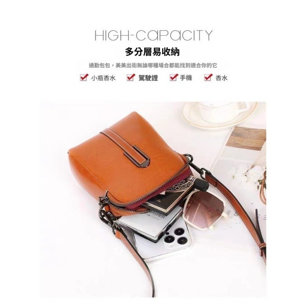 時尚復古油蠟皮單肩小包 貝殼包 手機包 證件包 小包包 通勤包 輕便收納