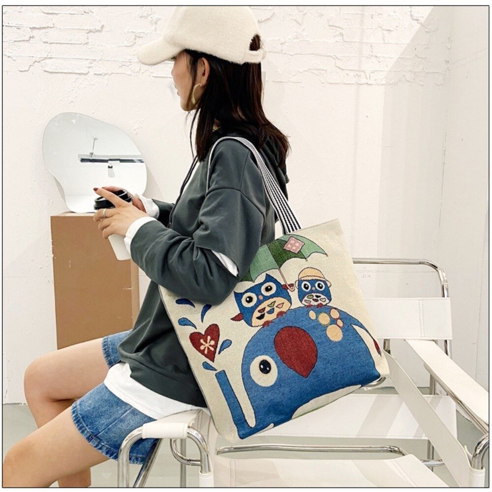 標籤:#時尚卡通刺繡單肩女包, #學生手提托特包, #大容量帆布袋