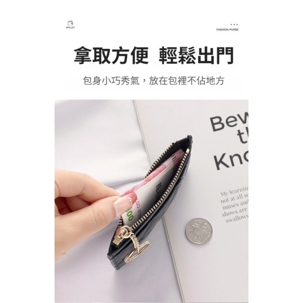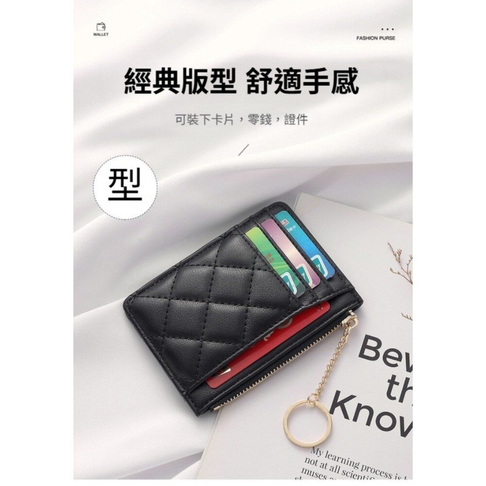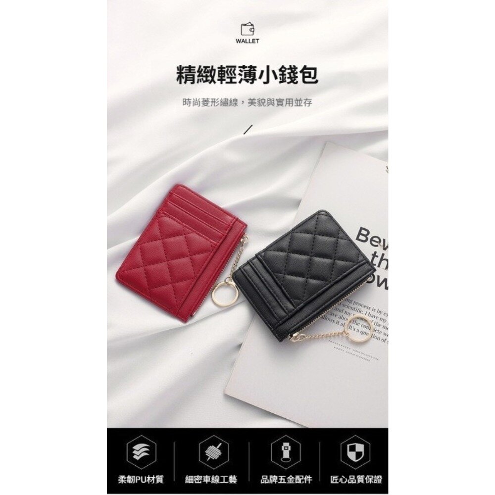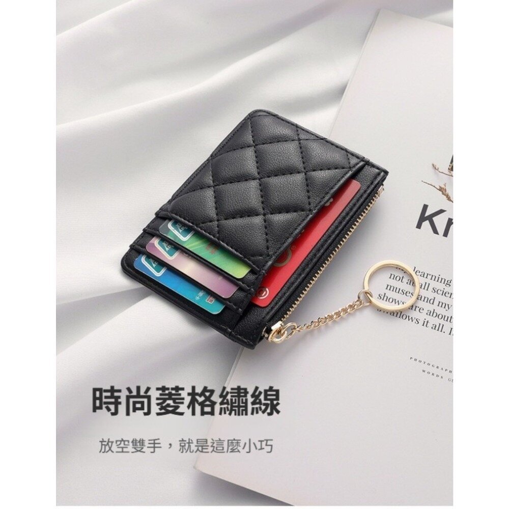 菱格紋拉鍊零錢卡片包 菱格 拉鍊鑰匙圈 多卡位 防潑水