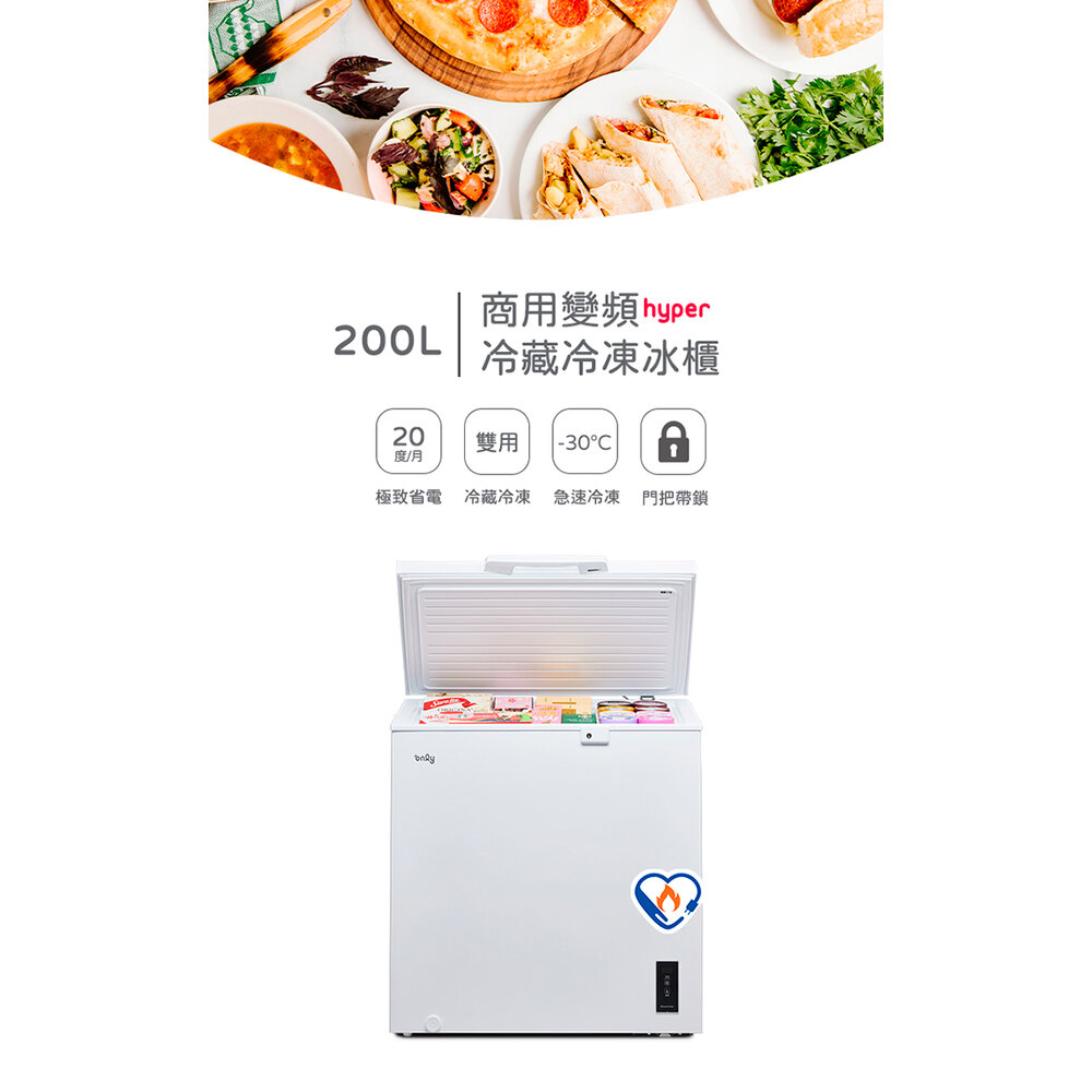 商品名稱:商用臥式變頻冷凍櫃 only 200L 上掀式冷藏冷凍冰櫃 200公升 超省電 福利品 送禮